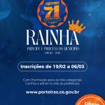 EDITAL RAINHA DO MUNICÍPIO 2024 (29/02/2024) O Desfile para a escolha da Rainha do município de Porteiras/CE, evento promovido do […]